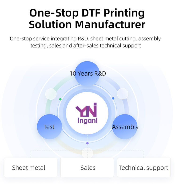 I principali prodotti che operiamo includono: stampante dtf e macchina per agitare la polvere, stampante dtf con macchina per agitare la polvere tutto in uno, stampante dtf UV, apparecchiature per la stampa a 8 colori, tagliatore dtf, forno dtf,DTF filtro per fumatori, caldaia e supporto per la personalizzazione in base alle esigenze.
